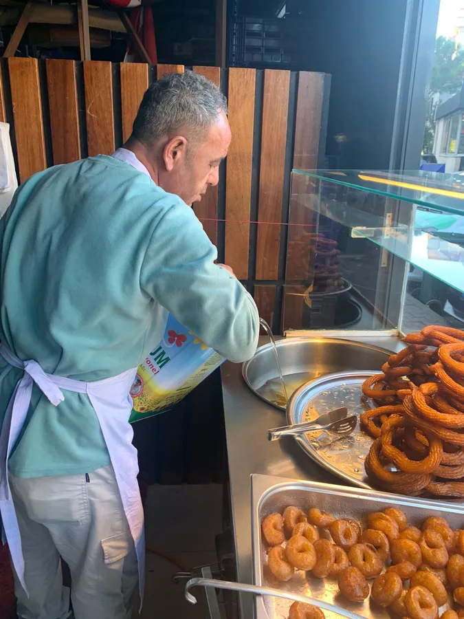 Ayhan Türkmen , 20 yıldır İstanbul’un farklı noktalarında sokak lezzetlerinin iz bırakan ustalarından biri. Öğle saatlerinden akşama kadar tezgâhının başında olan usta, kaliteli yağ kullanmasıyla tanınıyor. Kullanılan yağın temiz ve sık sık yenileniyor olması, tatlıların hem hafif hem de mideyi yakmayan bir yapıda olmasını sağlıyor.