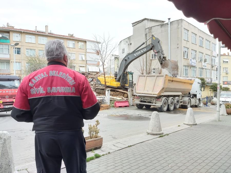 Yukarı Mahalle Belediye Caddesi üzerinde yer alan biri 2, diğeri 5 katlı olmak üzere kentsel dönüşüm kapsamında riskli yapı olduğu belirlenen iki binanın yıkımı sırasında, Kartal Belediyesi Zabıta ve Sivil Savunma Müdürlüğü ile Kartal Emniyet Müdürlüğü ekipleri de hazır bulundu. Ekipler tarafından gerekli önlemler alınarak yıkımdan önce olası bir kaza durumuna karşı çevredeki iki yapıda bulunan vatandaşların dışarı çıkması sağlandı. Yıkım sırasında ise tazyikli su ile oluşabilecek tozun önüne geçildi.