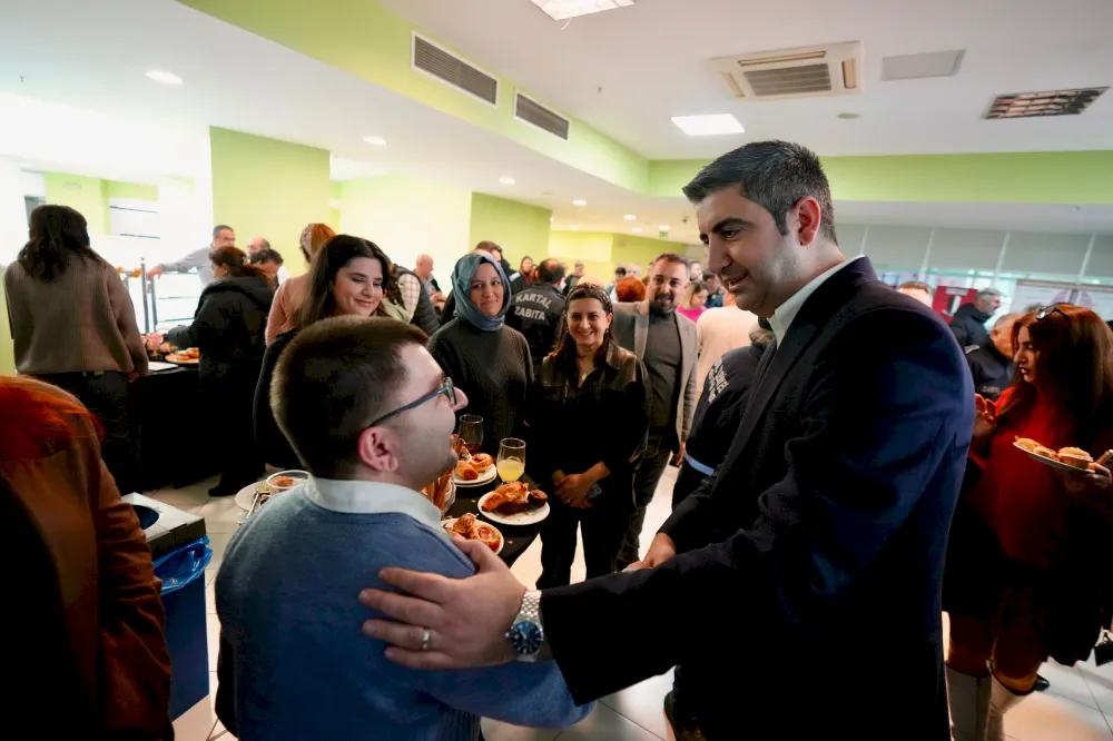 Kartal Belediyesi, yeni yıl öncesinde tüm çalışanlarını bir araya getiren anlamlı bir kutlama programı düzenledi. Kartal Belediyesi Ana Hizmet Binası’nın 5. katında gerçekleştirilen program, birlik ve dayanışma vurgusunun öne çıktığı samimi bir atmosferde geçti.Programa Kartal Belediye Başkanı Gökhan Yüksel’in yanı sıra; başkan yardımcıları, başkan danışmanları, birim müdürleri, meclis üyeleri ve belediyenin farklı birimlerinde görev yapan personeller katıldı. Program kapsamında katılımcılara yiyecek ve içecek ikramlarında bulunuldu.