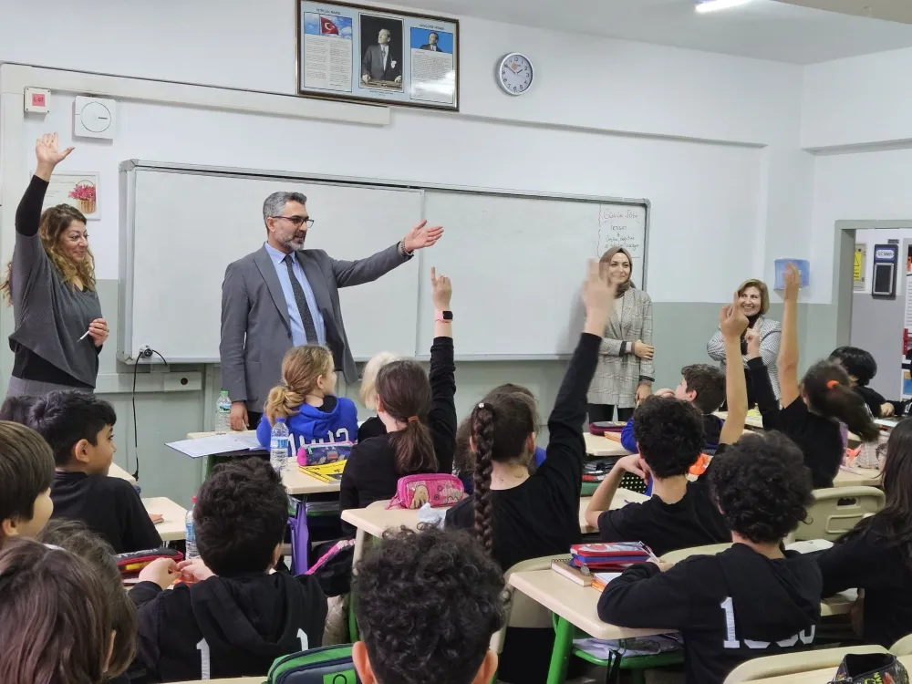 Kartal İlçe Milli Eğitim Müdürü Kıraç, Okul ziyaretleri kapsamında idareci, öğretmen ve öğrenciler ile bir araya gelerek fikir alışverişinde bulunuyor.