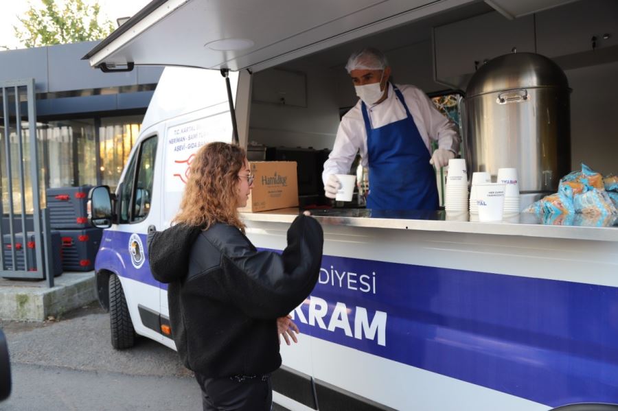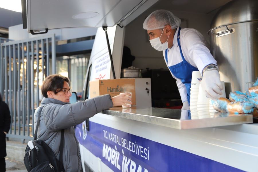 Kartal Belediyesi, Marmara Üniversitesi Mehmet Genç Külliyesi önüne getirilen mobil araçla üniversite öğrencilerine sıcak çorba, çay ve kahve ikramı yapıyor.