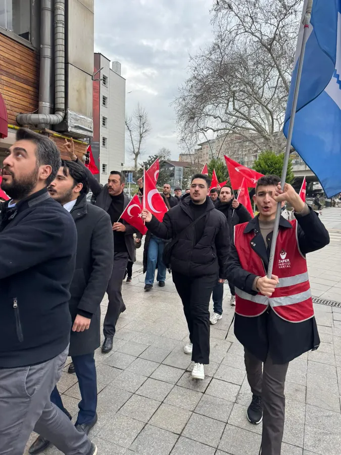 Zafer Partisi Kartal İlçe Başkanlığı, Türk bayrağına yönelik saldırılara tepki göstermek amacıyla Kartal Meydanı’nda “Bayrağa Saygı Yürüyüşü” düzenledi.Yürüyüş, Gazi Mustafa Kemal Atatürk, silah arkadaşları ve aziz şehitler anısına yapılan saygı duruşu ile başladı. Ardından İstiklal Marşı, meydanı dolduran partililer tarafından coşkuyla okundu.